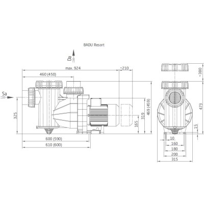 Samonasávací čerpadlo BADU RESORT je vhodné pro použití na poloveřejných a veřejných provozech jako např.: wellnes. Lze jej také použít jako čerpadlo pro vodní atrakce. Jako materiál je použitý plast s vyztužením ze skleněných vláken. Tato čerpadla mají průtok 30 -- 110 m3/h a výkonem 1,5 -- 5,5 kW