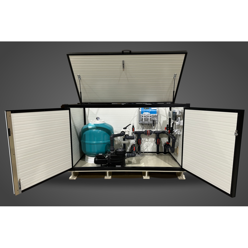 Tento box na technologii je novinkou na českém trhu. Je možné jej zakoupit prázdný nebo kompletně vybavený bazénovou technologií dle Vaší volby. "Aquabox" přivezeme na místo a je také možné u nás objednat kompletní napojení na trubní rozvody k bazénu.