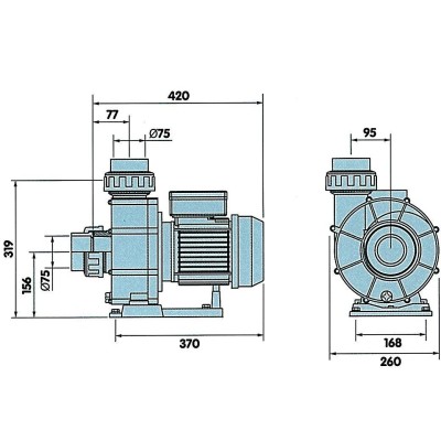 Samostatné čerpadlo k protiproudu, možno využít i jako oběhové čerpadlo k vodním atrakcím např.chrličům. Vyrobeno z polypropylenu s příměsí skelného vlákna. Umístění čerpadla by mělo být v suchém prostoru, pod úrovní hladiny vody v bazénu. Pumpa je vhodná pro předmontáže protiproudu Vag-Jet a V-Jet.