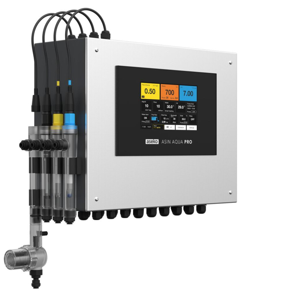 ASIN Aqua PROFI je řídící automat určený pro veřejný sektor s nejvyššími požadavky na přesnost řízení a splnění veškerých hygienických norem. Automat je vybavený sondou CLF pro měření volného chloru, sondou Redox, sondou pH a volitelně sondou CLT pro měření celkového chloru. Vhodný pro použití s externími dávkovacími čerpadly.