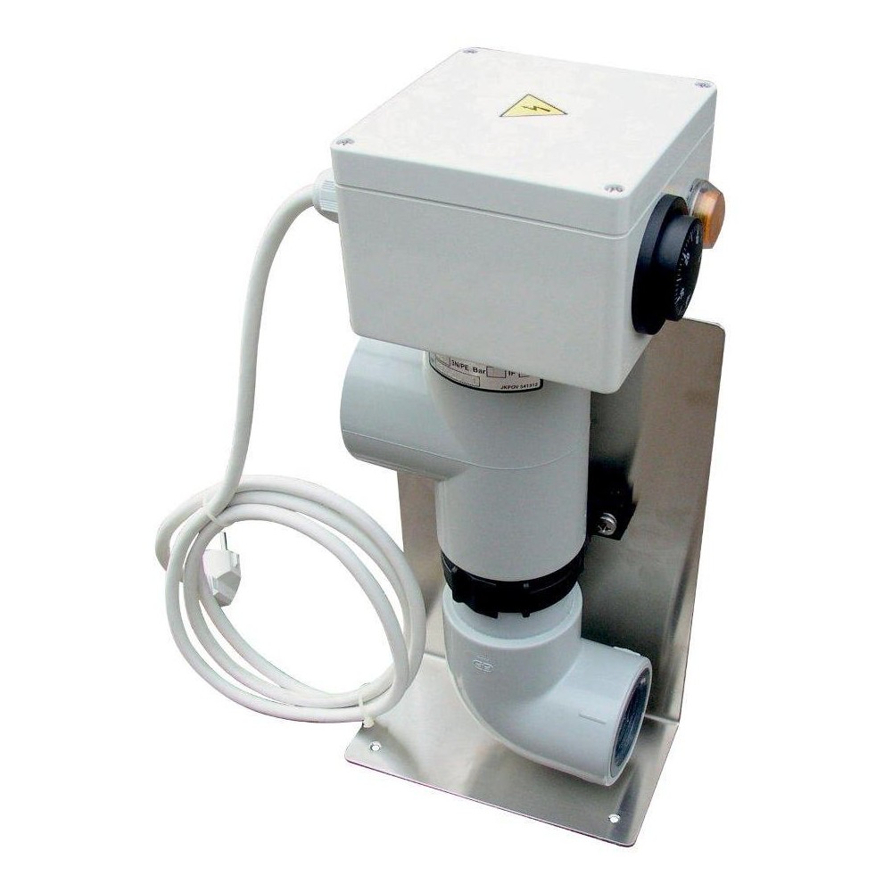 - EOVnTi, tento průtokový ohřívač je určen pro ohřev vody v nadzemních bazénech. Vlastní ohřívač je uchycen k nerezovému stojanu, který po ukotvení zajišťuje stabilní polohu ohřívače. Tělo ohřívače je stejně jako u typu EOVTi, z plastu odolávajícímu vysoké teplotě a topná patrona je z TITANU. Pro regulaci teploty slouží termostat do 40°C, dále je zařízení jištěno tepelnou pojistkou. Ohřívač je vybaven flexo šňůrou pro napojení do zásuvky 230 V za proudový chránič. Napojení na vodní okruh hadicovými trny 38 mm, popřípadě závitem 1,5" in. Každý ohřívač je testován na těsnost.