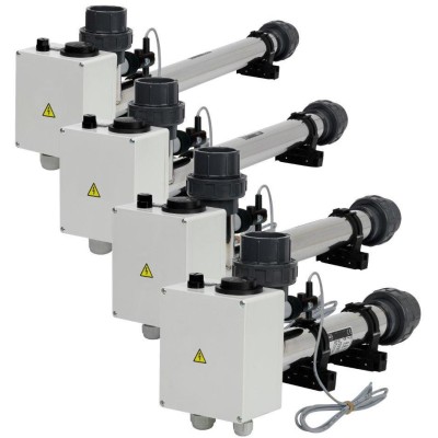 Elektrické průtokové ohřívače jsou určeny k ohřevu vody v bazénech a vířivých vanách, činnost spočívá v ohřevu protékající vody tělesem topení, teplota ohřívané vody je nastavena regulačním termostatem. Topné těleso je spínáno stykačem, který je ovládán výše uvedeným termostatem, bezpečnostním indikátorem průtoku. Z tohoto důvodu je k topení nutná tzv. velká automatika - 24 hodinový programátor filtrace, proudový chránič (ochrana před nebezpečným dotykovým napětím), tepelná ochrana motoru, stykač a spínač topení.
