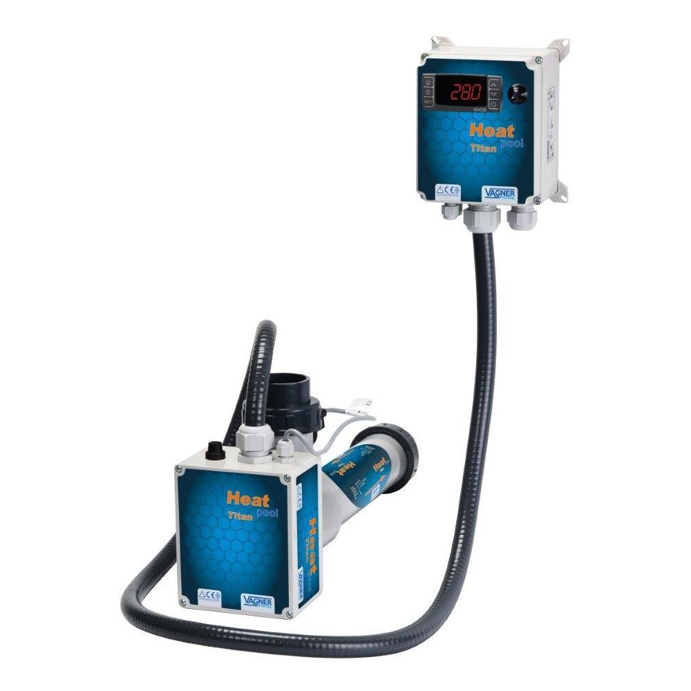 - Titanový ohřívač Heat pool se spínacím stykačem je obdobně jako typ EOVTi vybaven el. průtokovým spínačem, tepelnou pojistkou a elektronickým termostatem