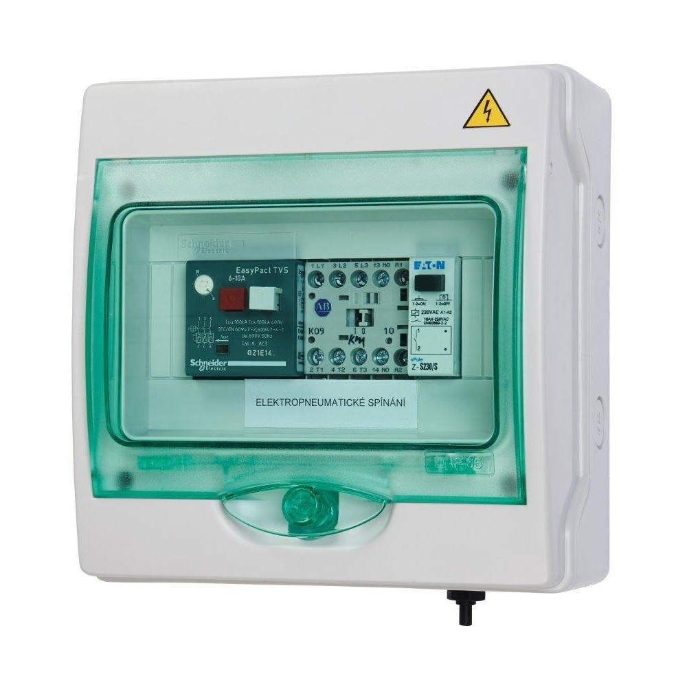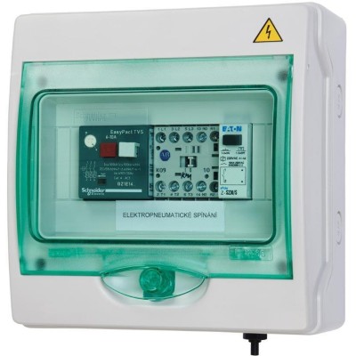 Elektropneumatické spínání je umístěno v el. krabici s krytím IP65 pro možnost montáže kamkoli do vlhkého prostředí. Toto zařízení je možno připravit pro jakákoli čerpadla dle konkrétních požadavků.