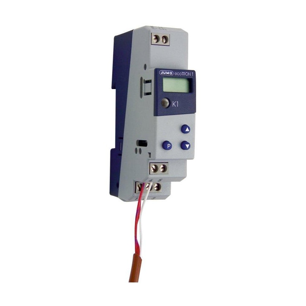 Tento elektrický termostat je umístěn v plastové krabičce na DIN lištu s krytím IP 20, šířka 1,25M. Délka čidla je 2,5 m. Nastavitelný rozsah, přednastaveno 0-40°C.