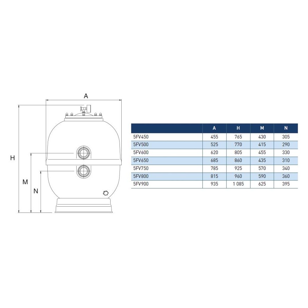 Filtrační nádoba Lisboa 600 mm - boční ventil