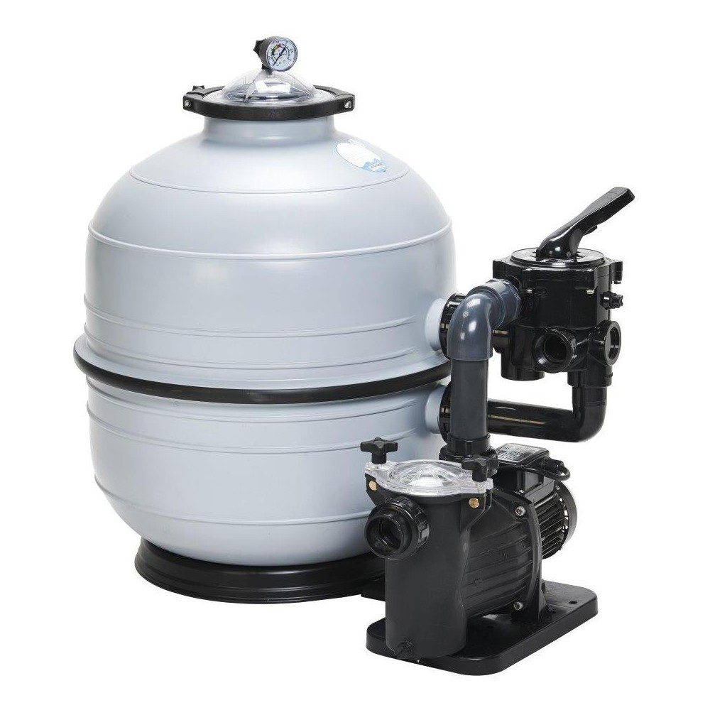 Filtrační nádova MIDI s 6-ti cestným bočním ventilem, manometrem a filtračním čerpadlem Preva (12m3/h).