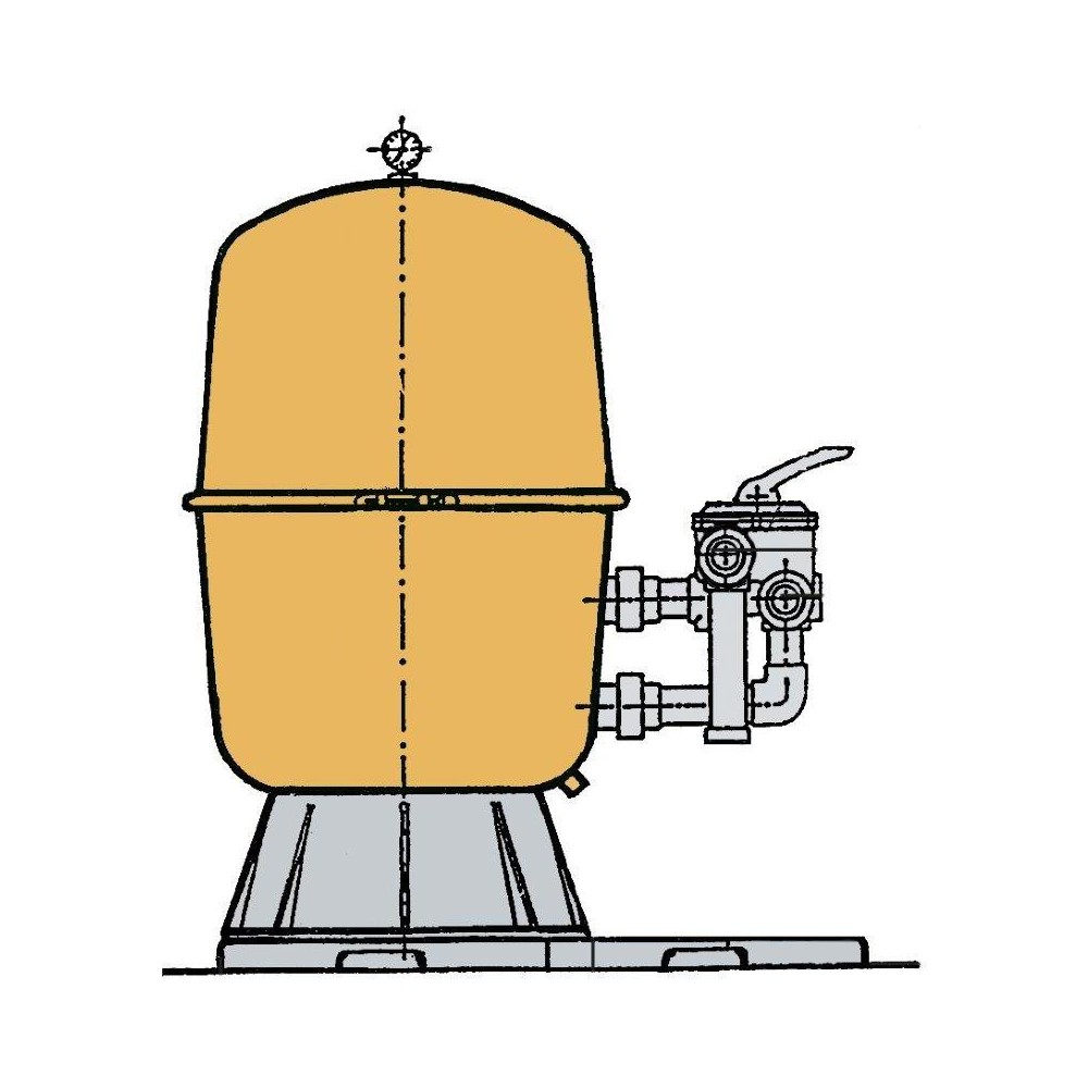 Filtrační dělená nádoa s 6-ti cestným bočním ventilem, manometrem a filtračním čerpadlem Preva 50 (9 m3/h)