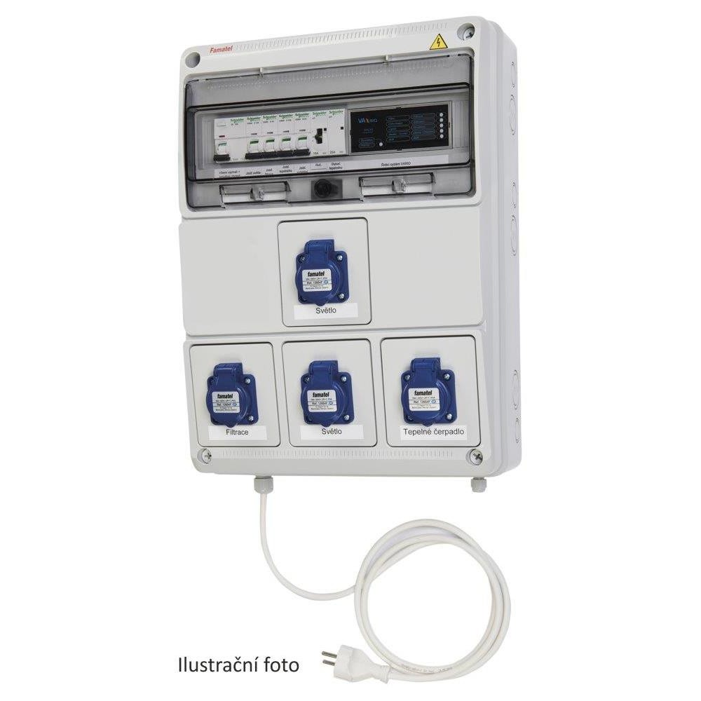 Automatika VArio pro bazény s 230V filtrací, osvětlením, 230V protiproudem, dávkováním s vlastním měřením (VA DOS / VA SALT SMART, nutný komunikační kabel), tepelným čerpadlem a atrakcí