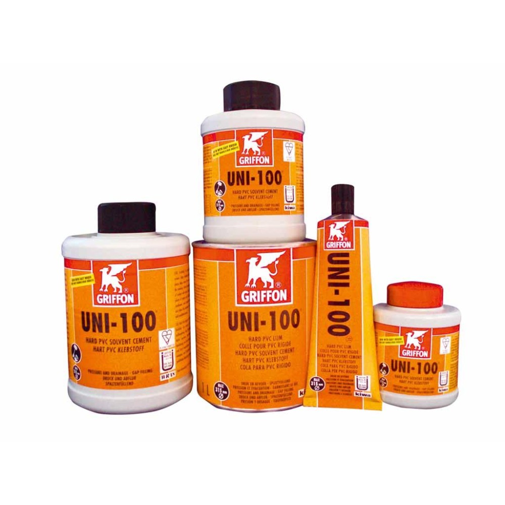Lepidlo Griffon před použitím dobře potřepejte. Na obě očištěné a suché plochy štětcem naneste v podélném směru souvislou a rovnoměrnou vrstvu lepidla (u hrdla tenčí a u konce trubky hrubší). Trubky a fitink zasuňte až na doraz tak, abyste nepootočili lepené díly a několik vteřin podržte. Lepené díly musí být zasunuté do 4 minut od začátku nanášení lepidla. Teplota nad +25°C nebo tenčí vrstva lepidla způsobuje zkrácení otevřené doby zpracování. Skladujte lepidlo v teplotách Od 5°C do 25°C.