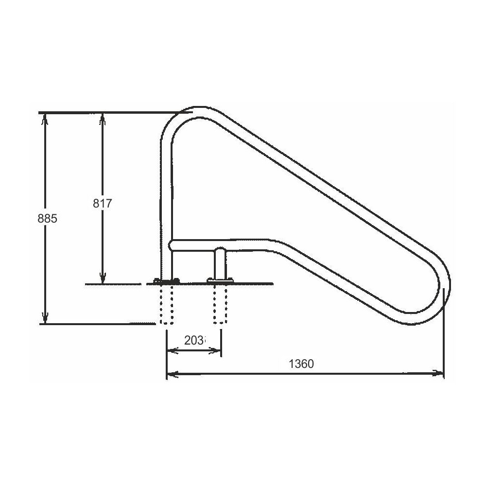 Žebříkové madlo 1360mm s pouzdrem a rozetou AISI 316 - 1ks
