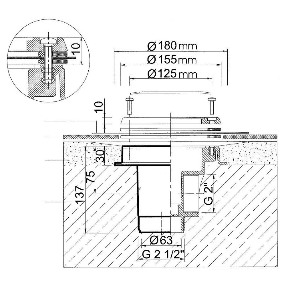 Veškeré dnové výpusti jsou vyrobeny z ABS a liší se designem krytu, který je z nerez. ocel. plechu. Dnové výpusti se dělí dle typu, pro betonové nebo fóliové, popř. jiné bazény. Směr odtoku je 90° a 180°. Podlahová výpust ABS, nerez mřížka AISI 316 -- pro fóliové bazény, napojení 2“ in.