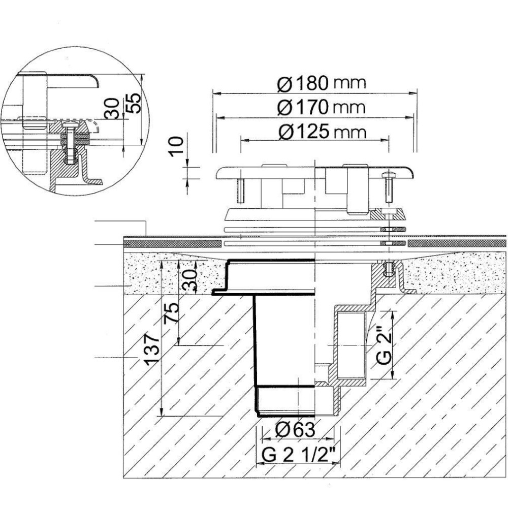 Veškeré dnové výpusti jsou vyrobeny z ABS a liší se designem krytu, který je z nerez. ocel. plechu. Dnové výpusti se dělí dle typu, pro betonové nebo fóliové, popř. jiné bazény. Směr odtoku je 90° a 180°. Podlahová výpust ABS, nerez mřížka AISI 316 -- pro fóliové bazény, napojení 2“ in.