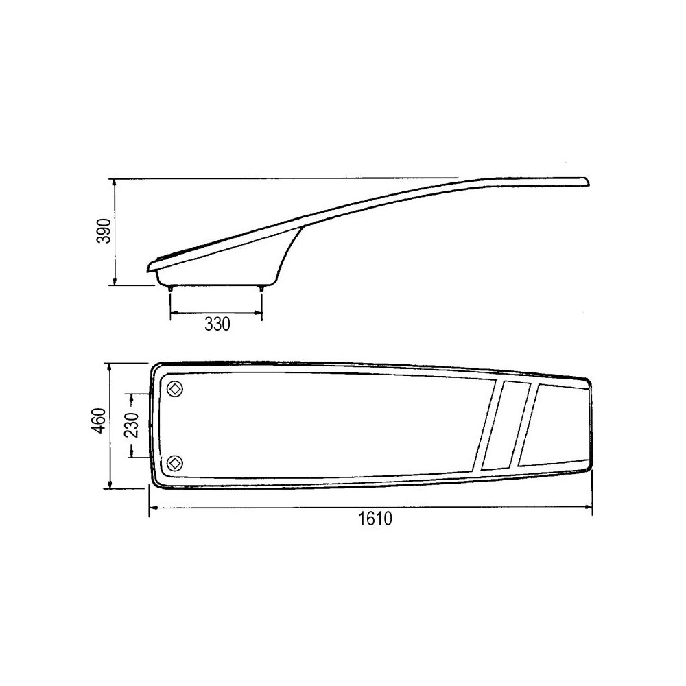 Deska vyrobená z polyesteru a skelného vlákna. Protiskluzový povrch na celé desce. Skákací prkno podporuje maximální hmotnost 80 kg.