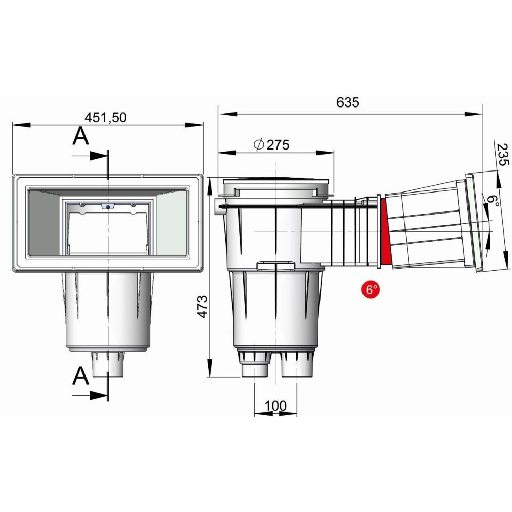 Skimmer 17,5 l s úkosem 6°, široké hrdlo, mosazné zástřiky