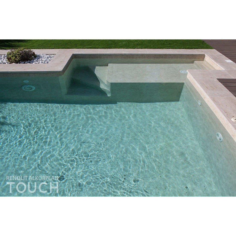 ALKORPLAN je vysoce pevná a tvárná bazénové fólie z měkčeného PVC s výztužnou vložkou z polyesterové tkaniny. Fólie je opatřena akrylátovou antibakteriální vrstvou, která chrání povrch před poškozením, starnutím, zvyšuje UV stabilitu fólie a zamezuje růstu bakterií.