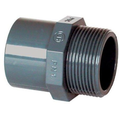 PVC Mufna - přechodka; připojení - lepení x závit ext.; barva - šedá; (ext. = vnější)