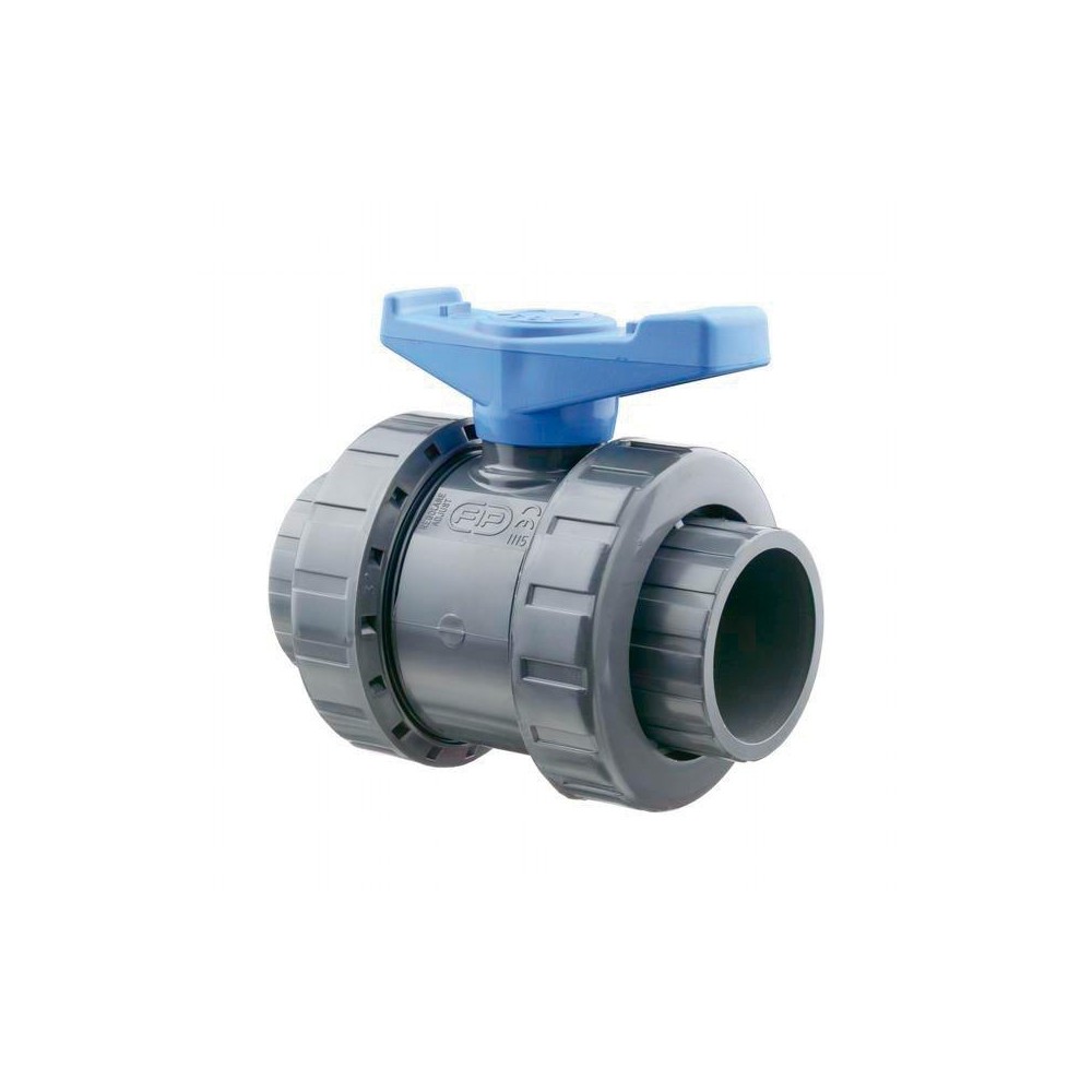 PVC Kulový dvoucestný ventil; připojení - lepení; barva - šedá