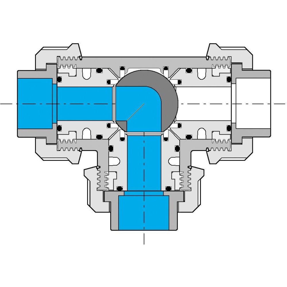 PVC Kulový třícestný ventil; připojení - lepení; barva - šedá