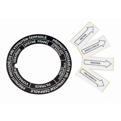 Samolepící popis poloh šesticestného ventilu ( Midas, Praher, Speck, ). S vyznačením jednotlivých funkcí pro snadnou obsluhu ventilu.