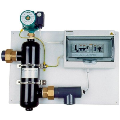 Tepelné výměníky - kompaktní jednotky. Pouze na objednání. Výměníková kompaktní jednotka - sestaveno z: Tepelného výměníku ( vývody šroubením mosaz/plast 1,5"/50 mm. Oběhového čerpadla Wilo ( na primárním okruhu 1"). Jímky pro teplotní čidlo termostatu. El. automatiky s proudovým chráničem, jistícími a spínacími prvky, které ovládají teplotu vody, spínání filtračního zařízení s termostatem. Celý komplet je namontován na desce